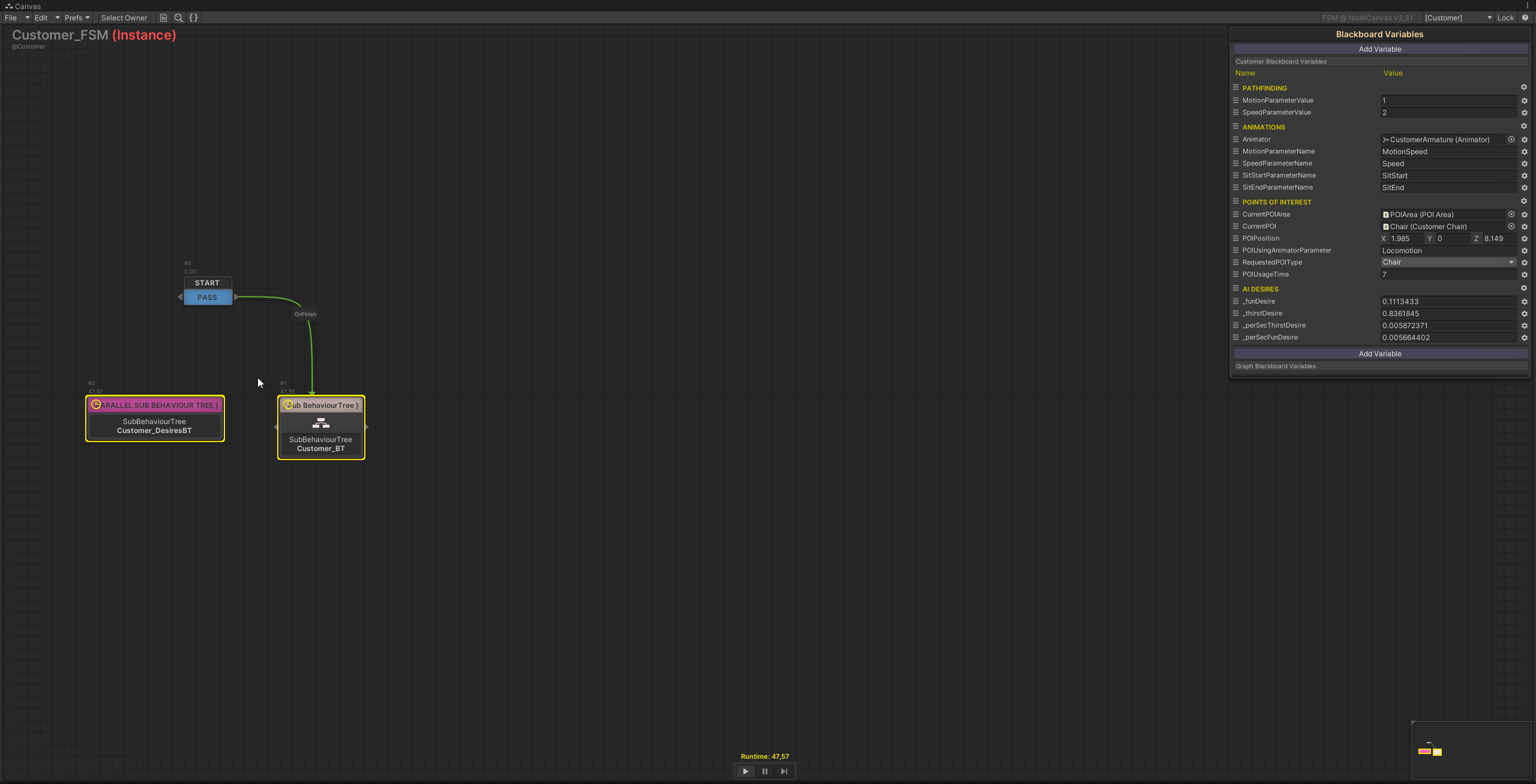 Once a point of interest is found, the customer will approach it and "use" it, playing an animation for a specified amount of time.